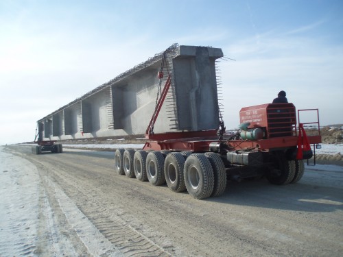 運梁車是為公路橋梁架設專門設計的預制梁運輸機械。 輪胎式運梁平車主要適用于預制梁場與架橋工地較遠,不適合鋪軌或鋪軌費用較高的場合。運梁車的剎車系統(tǒng)對縱坡有較大的適應性。輪胎與地面摩擦阻力比軌道式運梁車有顯著的優(yōu)勢。本車具有載重量大、自行式、運輸不受距離***。性能可靠,安全設施齊全,整機結構合理,運轉平穩(wěn)操作舒適,維修方便,抗傾覆穩(wěn)定性好,生產效率高等特點。